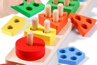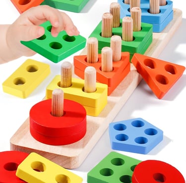 Toys that involve sorting shapes or stacking rings help improve hand-eye coordination and teach basic shapes and colors. They also enhance cognitive skills as children figure out which shape fits into which slot or how to stack rings in the correct order.